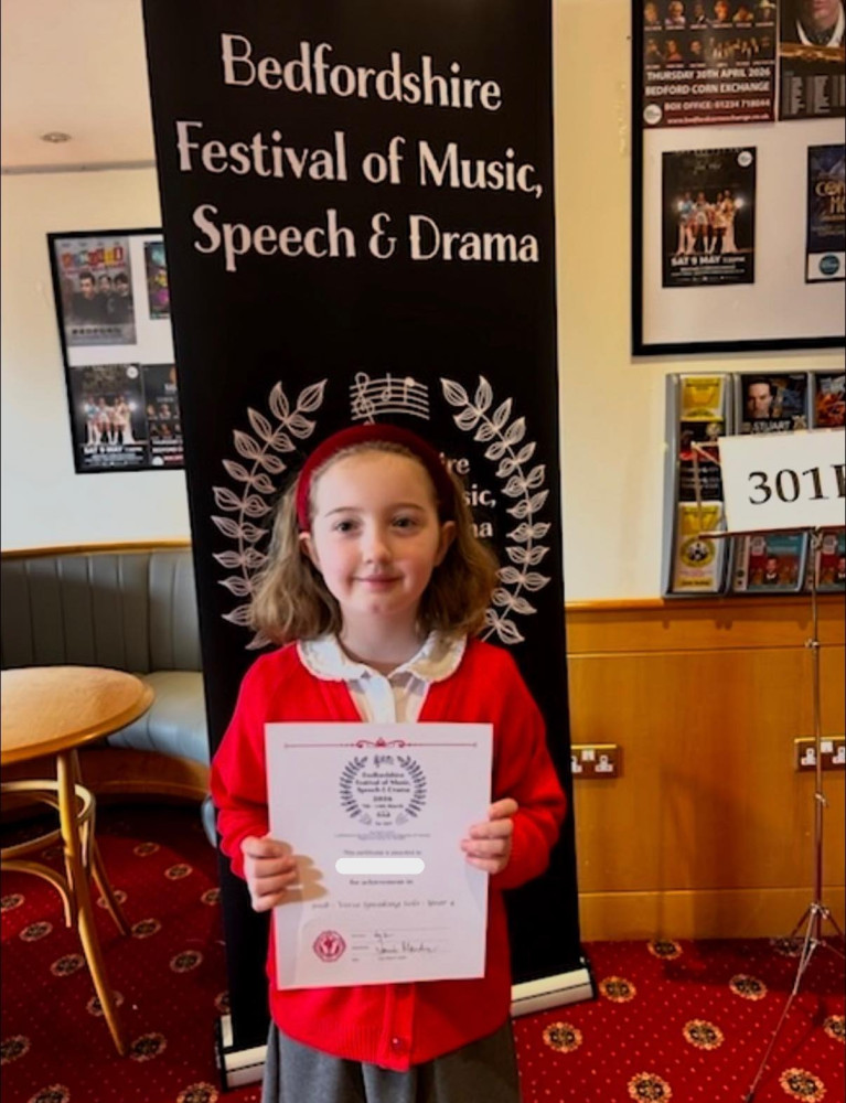 Eliza, Amber and Emily took part in the Bedfordshire Festival of Music, Speech and Drama in March 26.  This was the first time the girls had competed in the verse solo classes.  All girls received a commended grading - a fantastic performance!